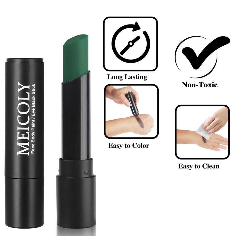 - Multiple Use:Mulfuntional face painting,can used as eye black stick for baseball,softball,football,little league,major league,hockey game,any tournament or extreme sport photography,and other more sporting occasion,also used on face and body for christmas cosplay makeup,great for Halloween witch green face paint makeup.