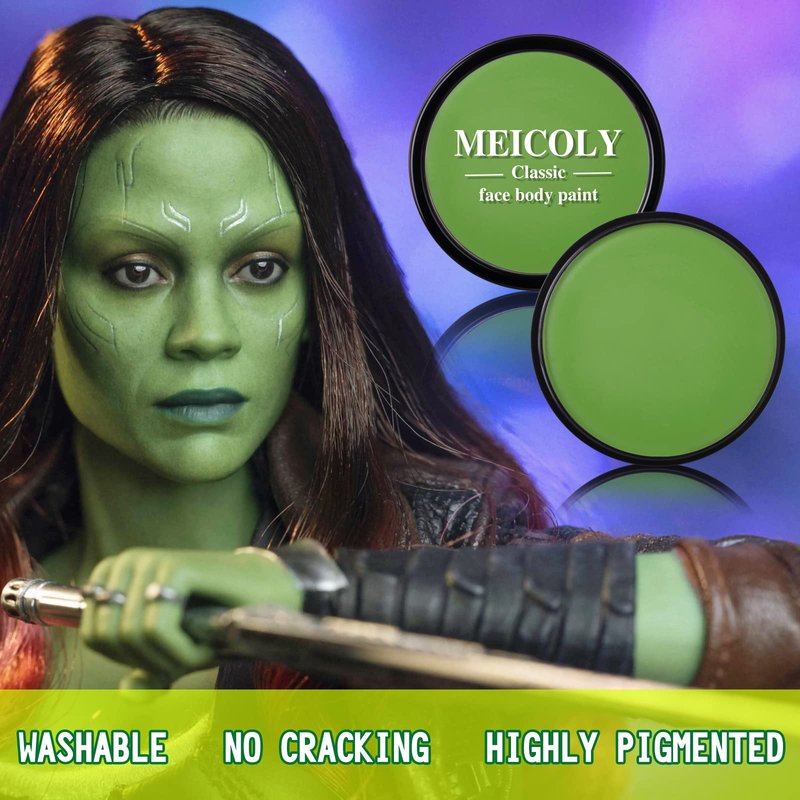- ✔WASHABLE FACE BODY PAINT --- Water Solution Formula,not Stain and Safe for your skin.Net Wt.30g/1.06 oz ,high pigment face paint provides enough to cover full body head to toe.Note:Our green face makeup paint is not Waterproof(Don’t body paint when it’s raining out)