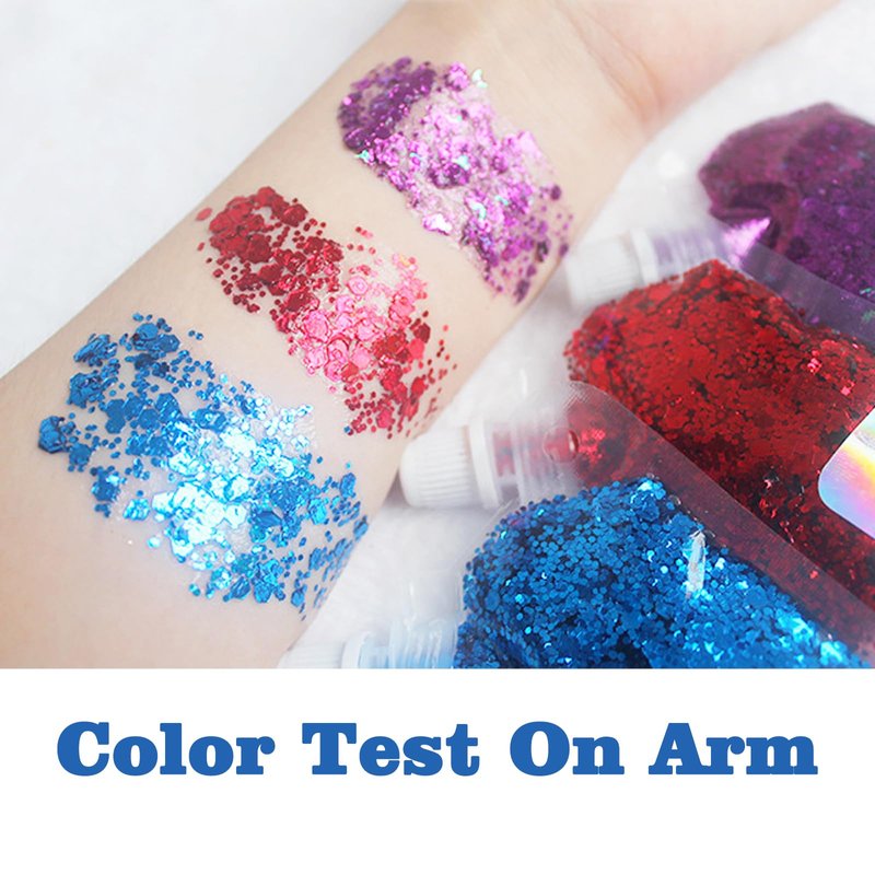 - Multiple Uses---The face glitter gel can be used on face, body, eyeshadow, lips, cheeks, hair,and other more parts of body,suitable for Music Festival Rave Accessories,Sexy Singer Concerts,celebrations like the school color party,the wedding,Halloween,Christmas,bar,party and other more performance occasion, make you be the most attractive woman in the crowd. When using the glitter gel on the body, you can dust some on the collarbones and shoulders for a super shimmering effect