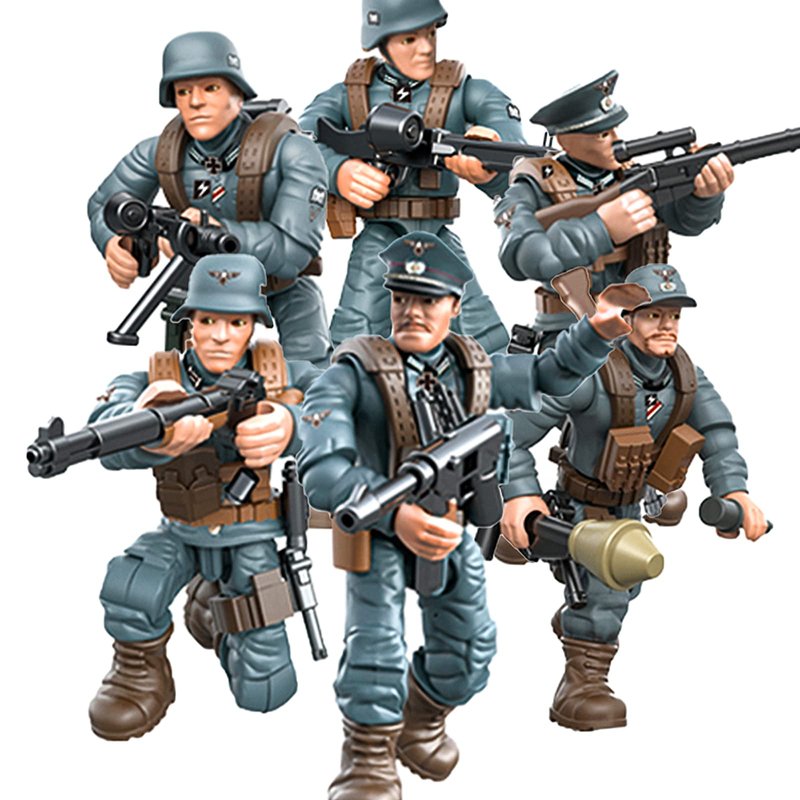 MEIEST 6 PCS Mini WWII Soldier Military Action Figures, Army Model Building Block Toys with Multiple Military Weapons Accessories,Party Favors Set for Kids (German Army)