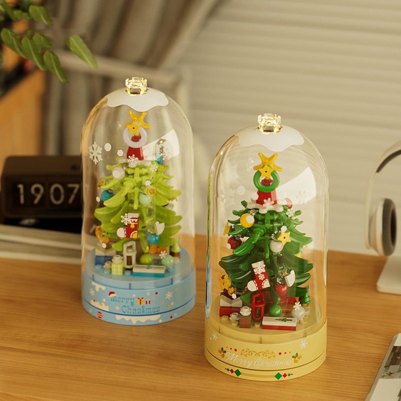 MEIEST Christmas Tree Building Blocks Music Box Set with Dust-Proof Dome,Xmas Holiday Construction Toy Gift,Home Decor (Starlight Christmas Tree)