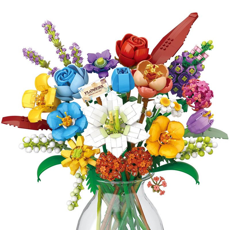 - Creative Decoration : Making the building kit set as a display for your office, book self, desk and room. Place the Artificial flower bouquet Model anywhere you like. Mini bricks are made of mini size smaller than the standard brick, but the detail are complete, rich in structure.