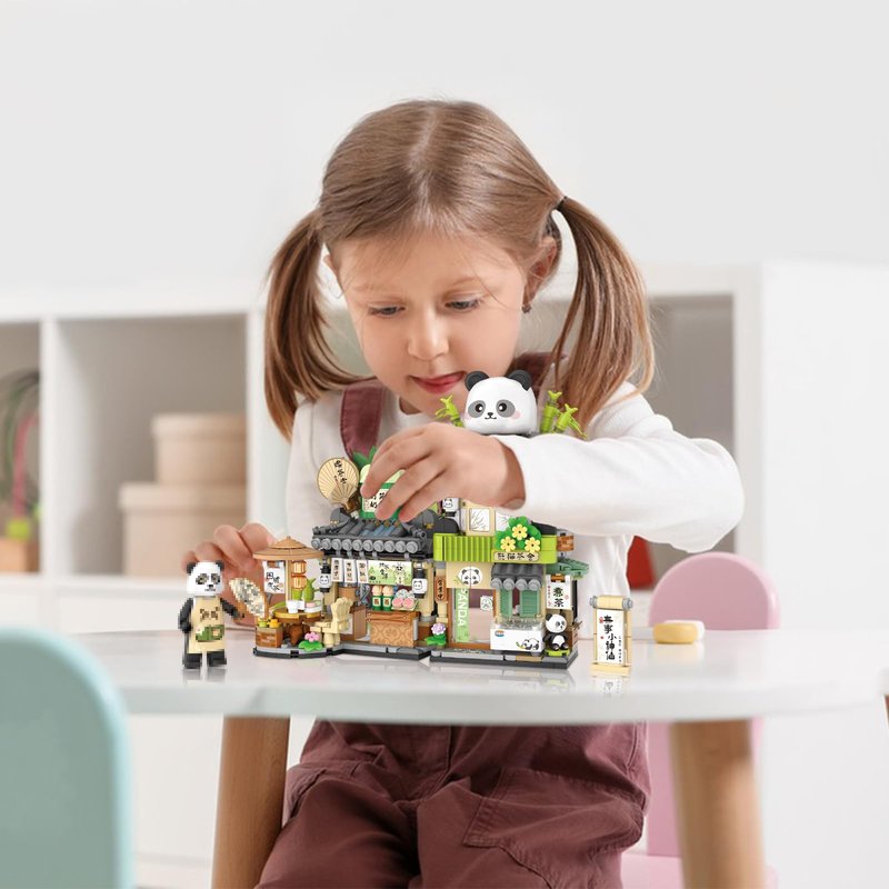 MEIEST Mini City Shop Street View Building Blocks Model Set,Simulation Animals Architecture Collection Particle Construction Building Bricks Toy,Home Decoration (Panda Tea House)