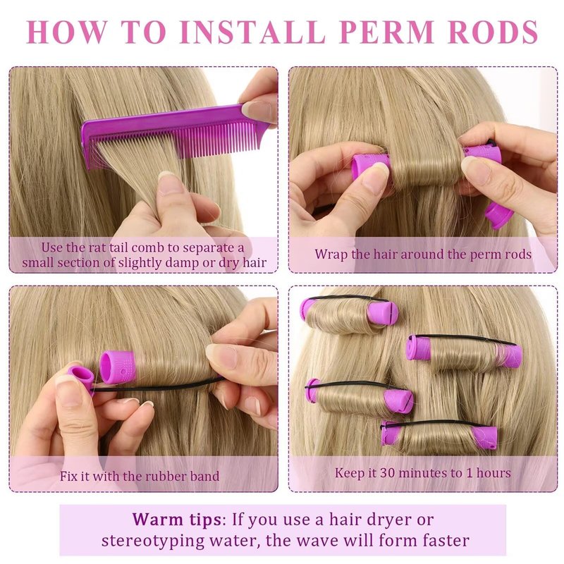 - Easy to Install: Get clung to your hair easily without any support of pins; Use pin tail comb to part hair,wrap it on the rod, fix the curls with rubber bands; Adjust the direction of starting roll hair in or out; create various hair wave