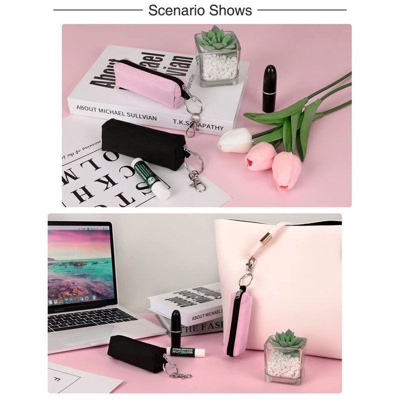 - Simple and practical: the zipper opening design is easy to store and access, which can effectively prevent chapstick from being lost, and the metal hook is easy to hang on the backpack, which is sturdy and durable