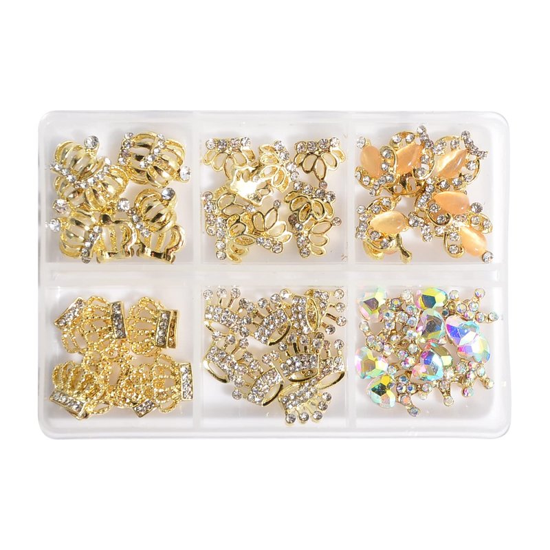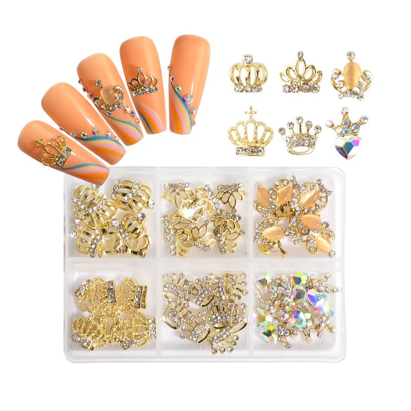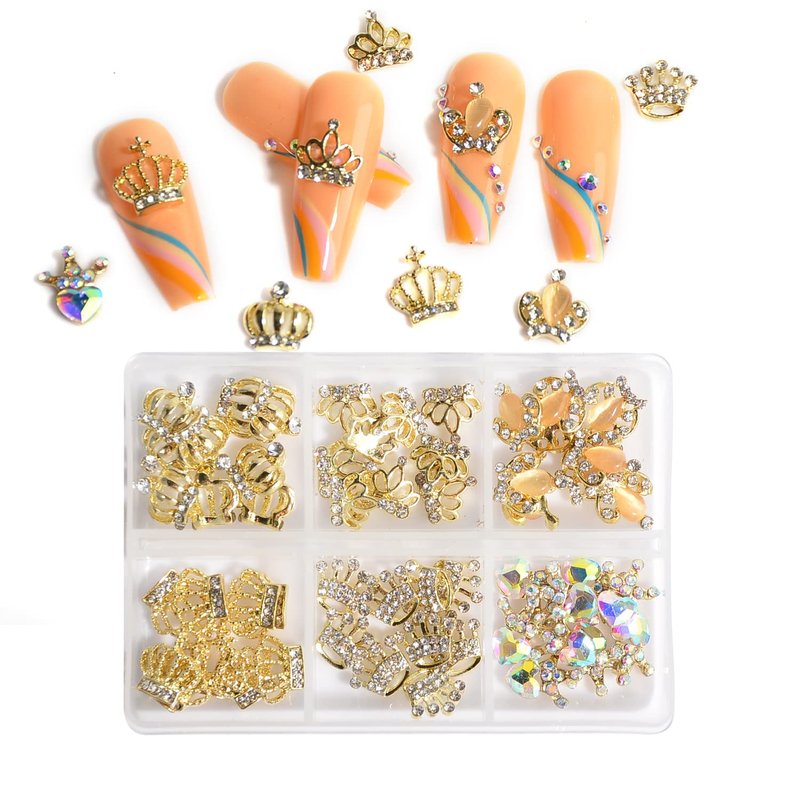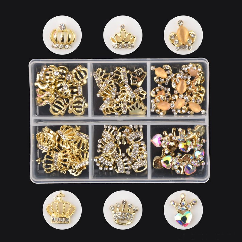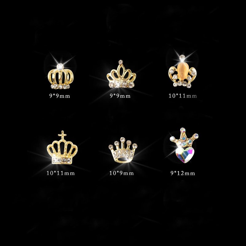 - 60 pieces of 3D alloy crown nail charms rhinestones in 6 different styles, each style accounts for 10 pieces.