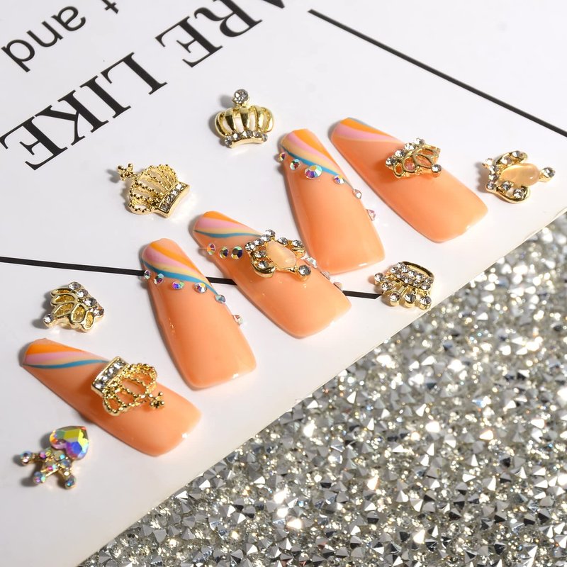 - This is a crown shape nail art decoration with inlaid shiny rhinestones, it can make your nails look elegant and special. You can combine some AB rhinestones or nail powder to DIY design.