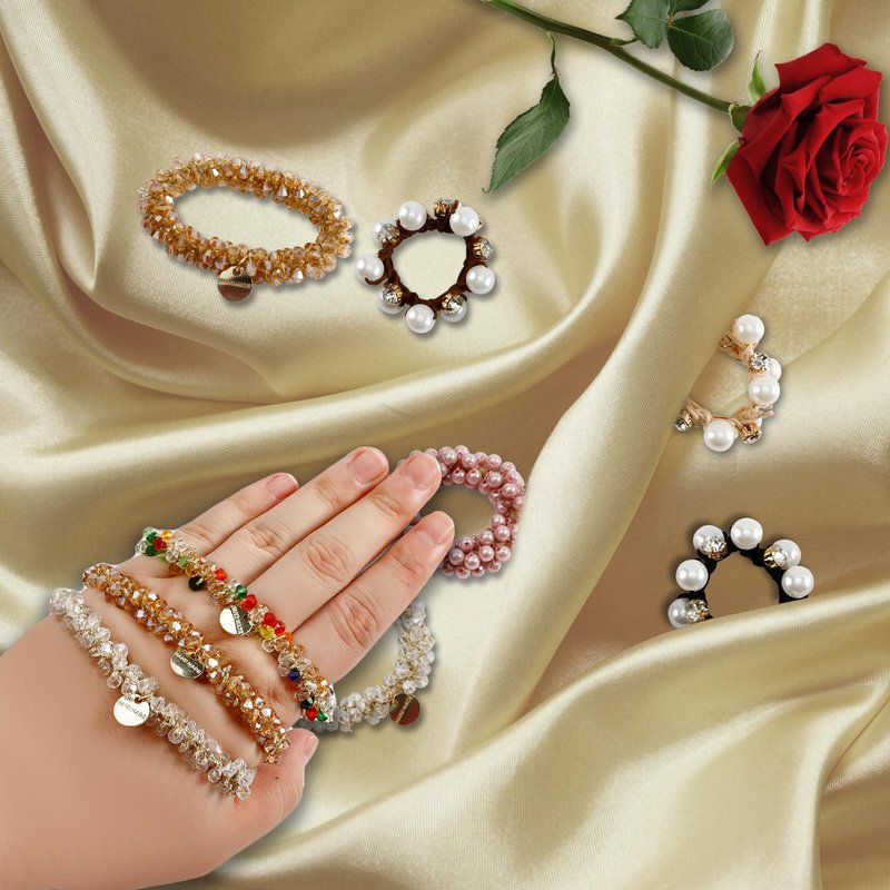 The pearl hair accessories for women can only be applied to fix a girl's ponytai or bun, but also can be worn on the girl's hand as a bracelet, Pearl scrunchies can be used as beautiful headbands to add glamor to a date, party, dance or wedding.