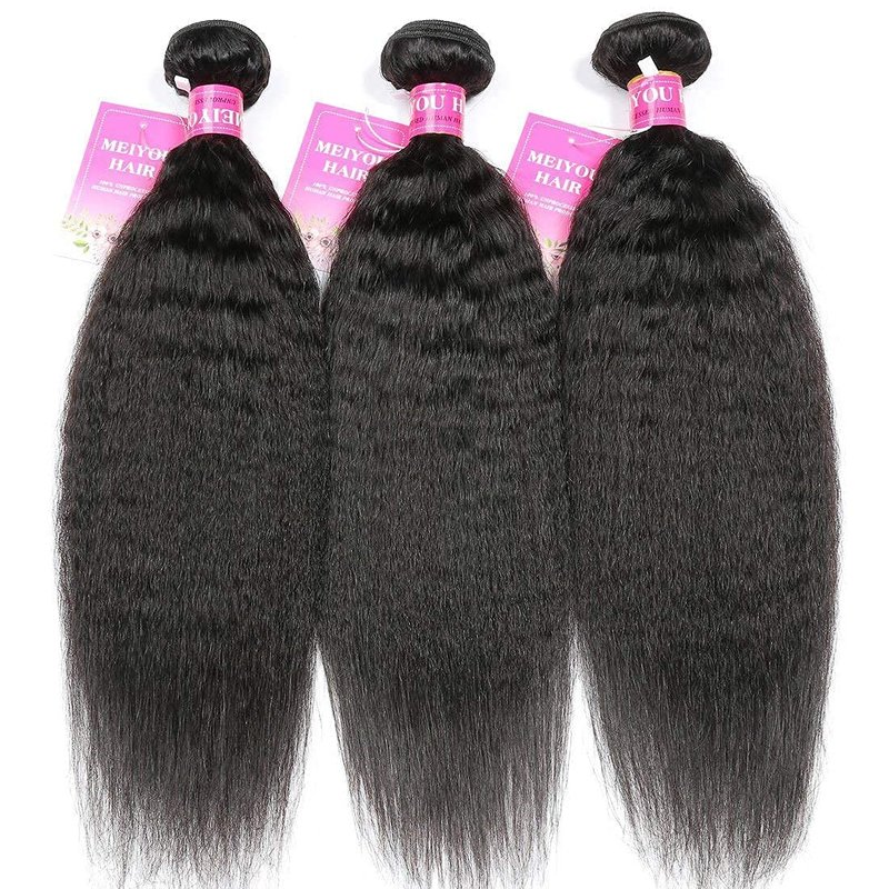 MeiYou 12A Kinky Straight Hair 3 Bundles Yaki Human Hair Weave Unprocessed Brazilian Virgin Remy Sew in Hair Extensions Natural Black (10 12 14)