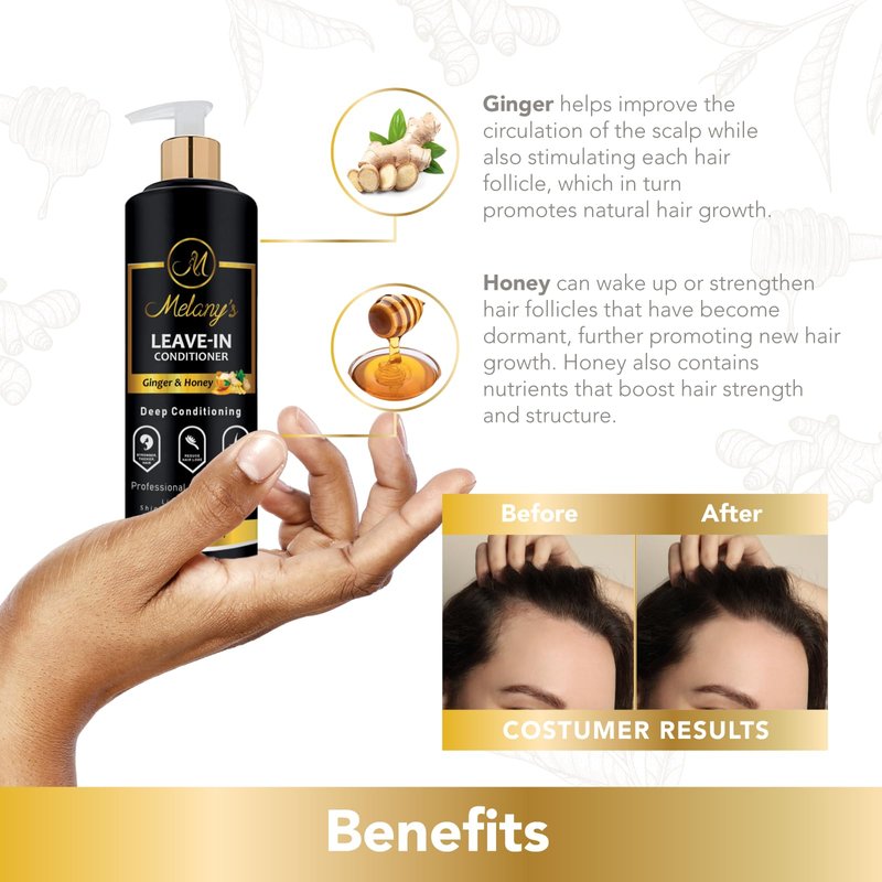 Melany's Hair Growth Leave-In Conditioner, Ginger & Honey, Anti-Thinning and Regrowth Support, Daily Hydrating, Strengthening, Volumizing Fuller Hair Natural Herb Treatment