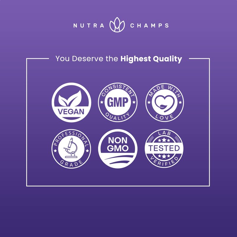 - Highest Quality Manufacturing - All NutraChamps supplements are manufactured in state-of-the-art facilities, and lab tested to guarantee that you receive the purest, safest and highest quality products on the market.