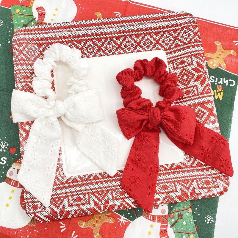 The bow hair scrunchies with soft embroidered fabric and comfort and light to wear.