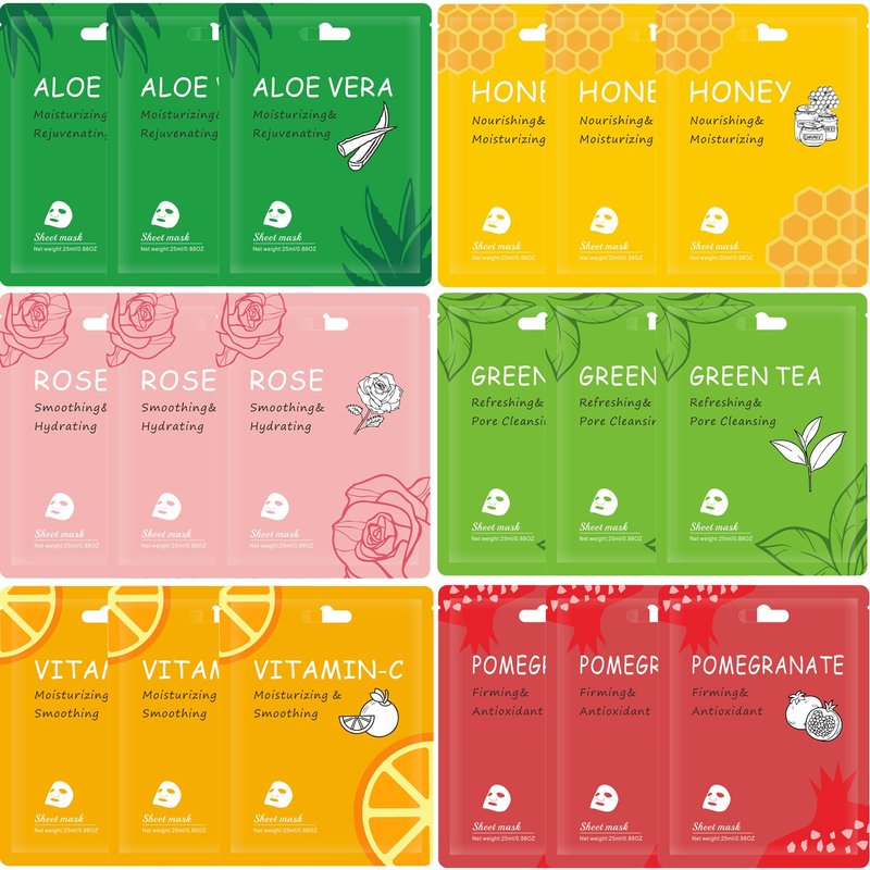 Meleell Facial Mask Sheet,Face Mask Skin Care Bulk Pack,Hydrating Spa Face Mask For Sensitive Skin, Facial Masks Sets For Women/Teen Girls (18-Packs)