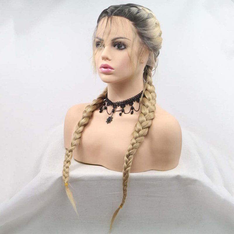melody wig Synthetic Blonde Lace Front Braid Wigs Ombre Blonde Double Braid With Dark Roots Heat Resistant Fiber Braid Baby Hair Wigs Add Human Weaving … …