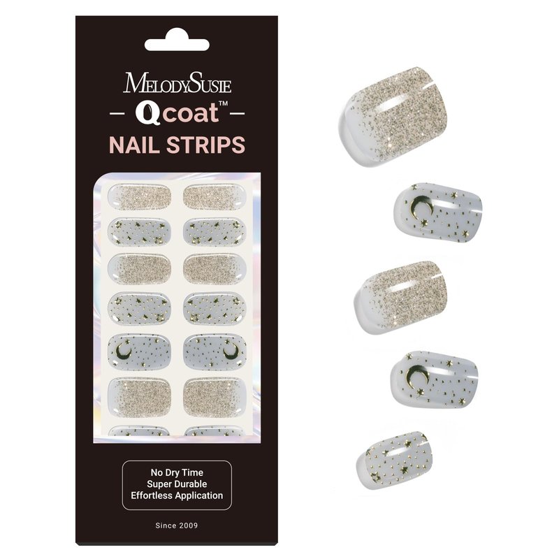 MelodySusie Qcoat Fully Cured Gel Nail Strips (Golden Stars) - UV Free Nail Polish Strips, Salon-Quality, Long Lasting Gel Nail Stickers, Includes 22 Nail Wraps, 2 Prep Pad, Nail File & Wooden Stick