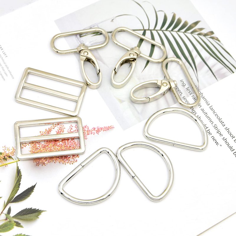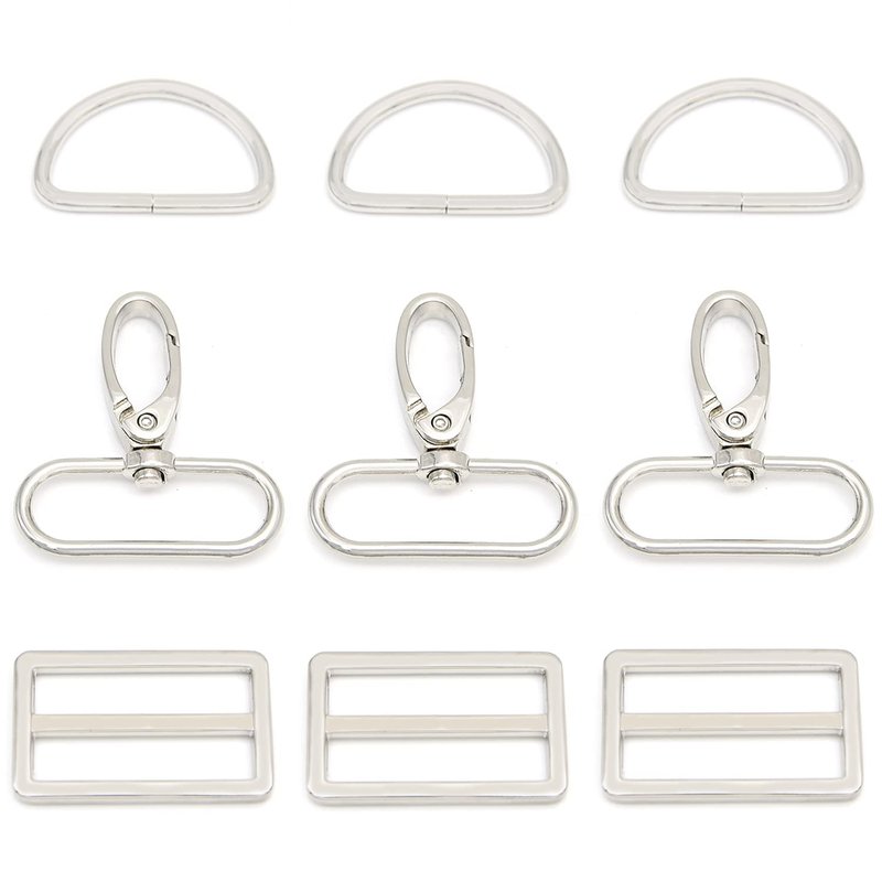 - [QUANTITY ] - Package comes with 5PCS swivel hooks(38mm), 5PCS D rings(38mm) and 5pcsTri-Glide Buckles(38mm) . That enough for your craft projects and daily needs.