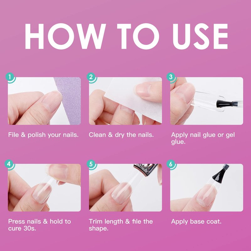 - 【EASY APPLY GEL X TIPS】Apply nail tips with gel nail glue and cure under LED/UV. Thinner tail, easier to fit the nail surface; large area of frosted surface on the tail makes the glue more sticky and not easy to fall off