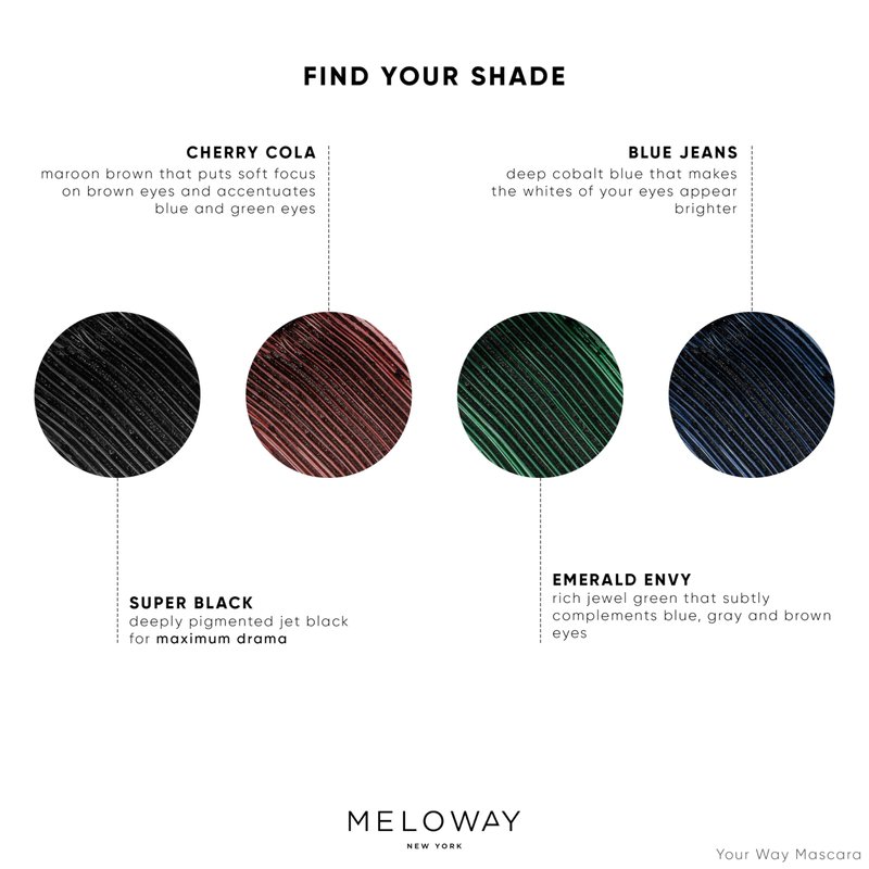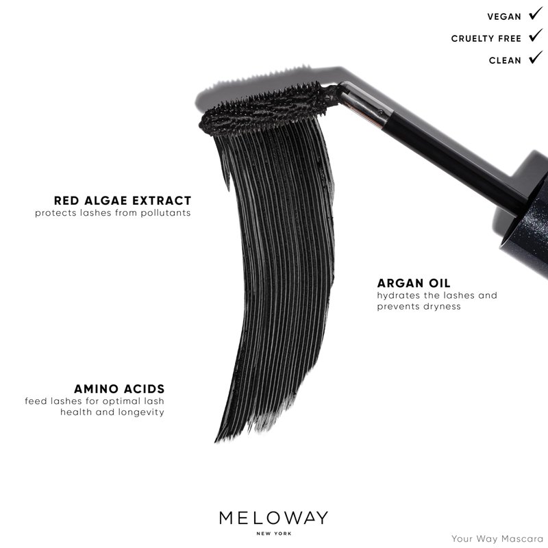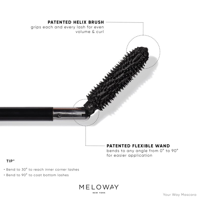 MELOWAY Your Way Mascara - Adjustable Wand, Lash-Conditioning Formula - Volumizing Lashes, Long-Lasting - Amino Acids, Argan Oil, Red Algae Extract - Vegan, Cruelty-Free, Clean - Super Black - 8 ml