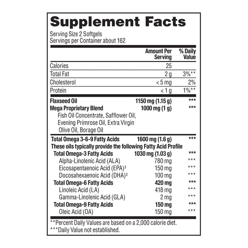 - 1600 mg of Omega Fatty Acids per 2 softgels