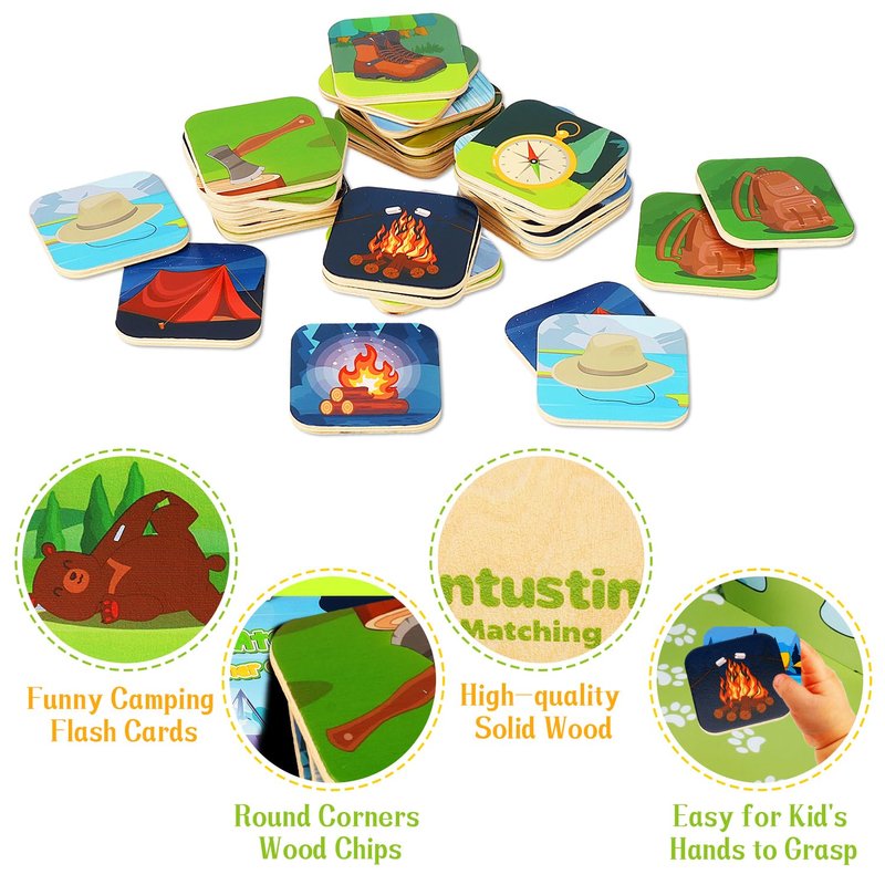 - 【MATCHING CARD SET INCLUDES】 The matching memory game includes 16 matching card pairs (32 pieces)and an instruction manual.Designed with the theme of camping that children like, and printed with vibrant patterns, it can fully allow children to exert their enthusiasm for playing games.