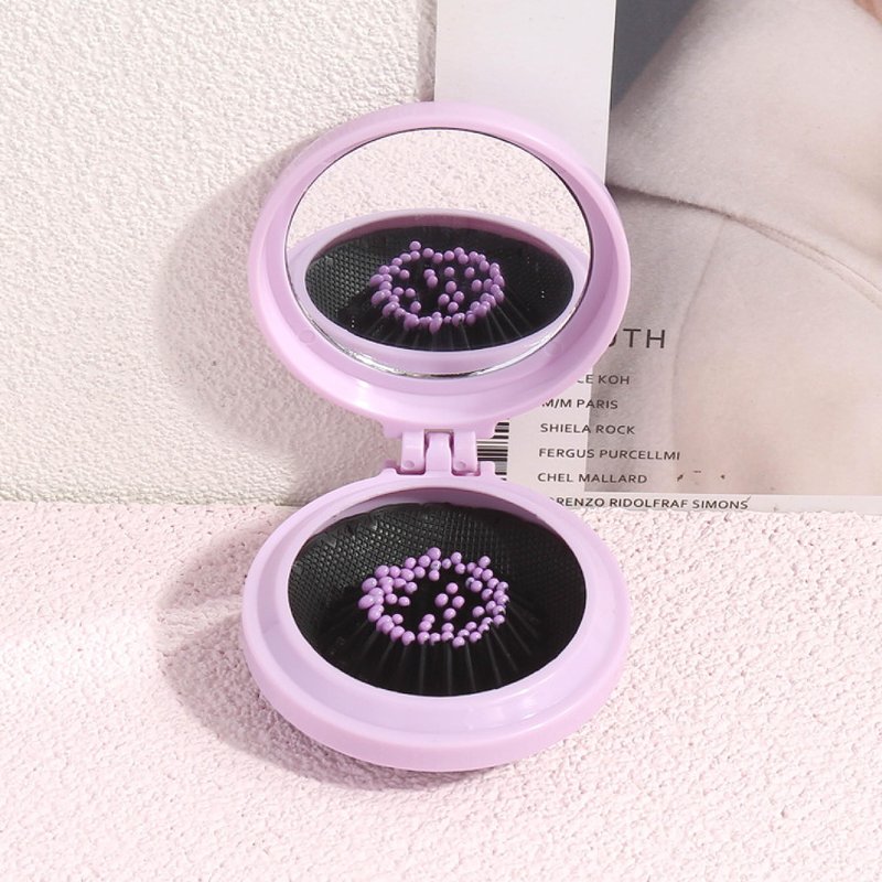 - 【Pocket hair brush】This is a perfect mini hair brush for purse,It has a double function-Bristles make your hair tidy and mirror makes your face makeup tidy.Small mirror brush makes you great lady.It helps you score at each party.