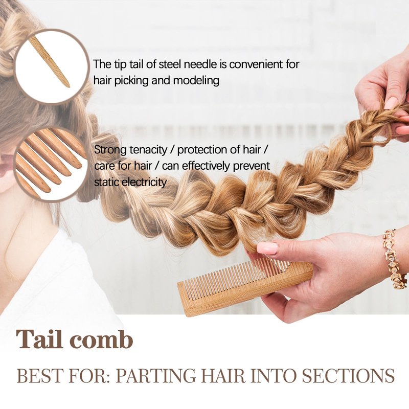 - 【Package Includes】The set comes with 1pcs hair round brush, 1pcs rat tail comb. Our products are made from premium natural bamboo. The bamboo hairpins will not damage your hair or scalp and help create smooth and shiny hair.