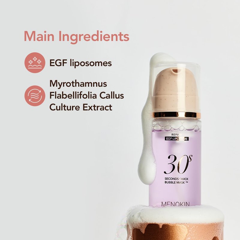 MENOKIN Korean Face Mask [30 Seconds Quick Bubble Mask] [REPAIR] Liposome EGF & Recovery mask, Radiance-boosting, Easy to Use, Glass Skin, 3.21 fl.oz