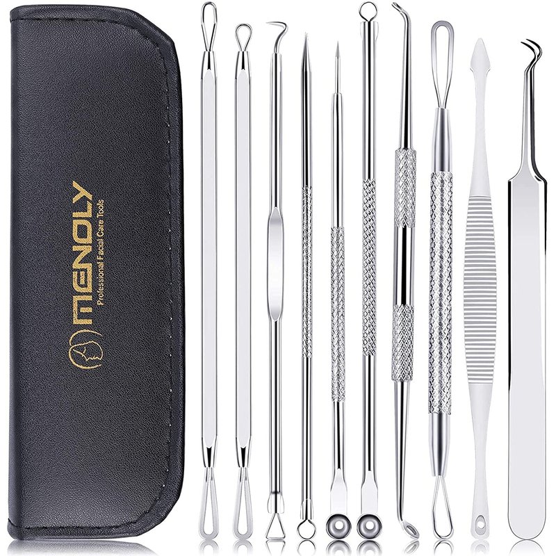 MENOLY Pimple Popper Tool Kit, 10 Pcs Blackhead Remover Zit Popper for Blemish, Pimple Comedone Extractor Acne Tool for Nose Face with a Leather Bag