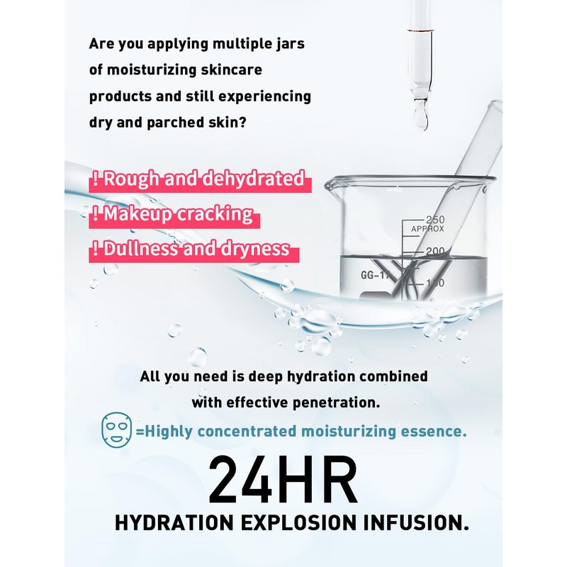 - 【Features】: Highly concentrated moisturizing essence / 24HR hydration explosion infusion / Japanese certified 100% organic cotton / Hypoallergenic (SGS,ISO) certified