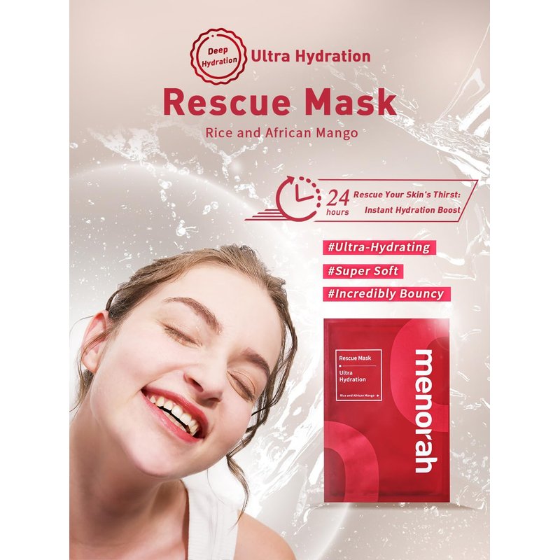 menorah skincare - Ultra Hydration Rescue Sheet Mask (4 Sheets) - with Rice, African Mango, Face sheet masks, Moisturizing mask, Super Hydration and Moisturizing, 100% Organic cotton sheet mask