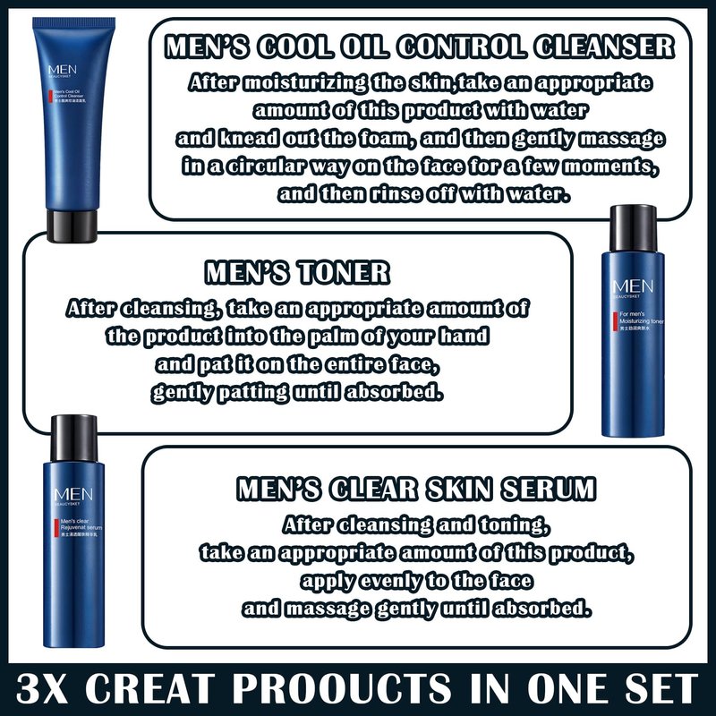 - ⭐【Mens Facial Skin Care Kit】The Facial skin care kit is designed for men's daily cleansing and moisturizing, it is cool and moisturizing, effectively cleanses your face and moisturizes for a long period of time, thus improving your skin, making it more hydrated, smooth and radiant.The Mens skin care kit contains a cleanser, toner and moisturizer, which are all designed to help protect your facial skin.