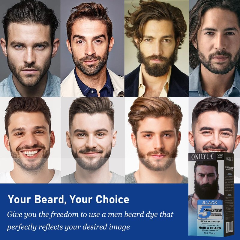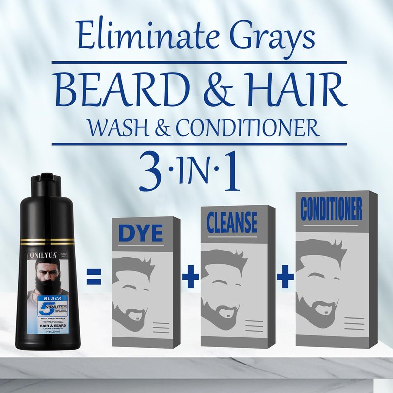 Specifically developed for men, IEMOKODA STORE Instant Mustache/Beard & Hair Dye Shampoo for gray hair coverage covers gray hair in 5 minutes. In 3 Simple Steps, apply this beard dye just like a shampoo. Never has covering your grays been this easy. Natural-looking results from roots to ends. Suitable for all levels of grays and all hair types and textures. Blends grays with your original hair color and fades naturally in 6 weeks. We believe in innovation, which was a key driving factor in producing this unique product. The 3-in-1 formula eliminates the need for separate beard washing, conditioning, and coloring steps, saving your time and effort.