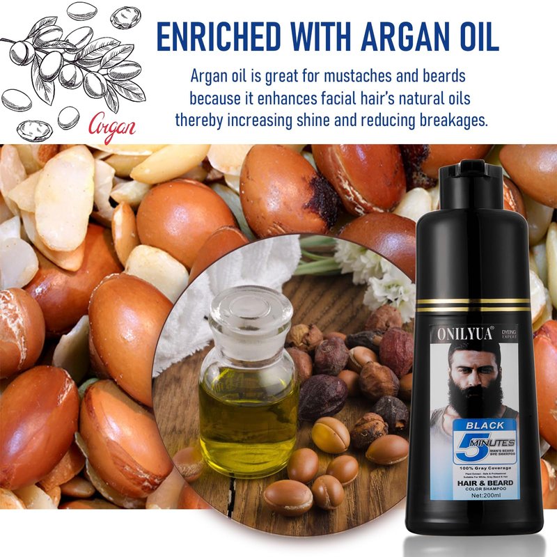 - VERSATILE & LONG-LASTING: This beard dye shampoo also functions as a hair color. Our product comes in a sized 200ml bottle to ensure you have enough amount to color your hair. One wash lasts 6 - 9 weeks on average, saving your pocket.