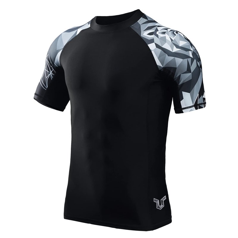 Men's Splice UV Sun Protection UPF 50+ Skins Rash Guard Short Sleeves(Bear,M)