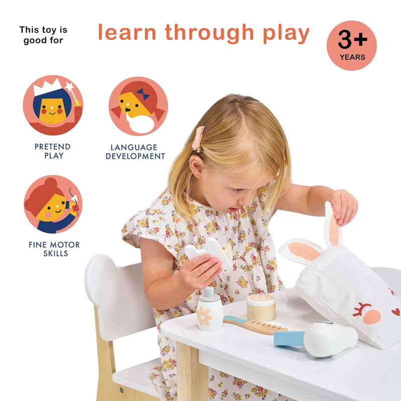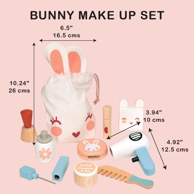 - IMAGINATION WITH PLAY - Not only is this set a blast for imaginative play, but it also nurtures caring and creative spirits. As children explore roles, they develop empathy, fine motor skills, and self-expression. Plus, it's the perfect way to encourage teamwork - let the beauty sessions begin! With the Bunny Make Up Set, every playdate turns into a runway show, building confidence and creativity one fabulous look at a time!
