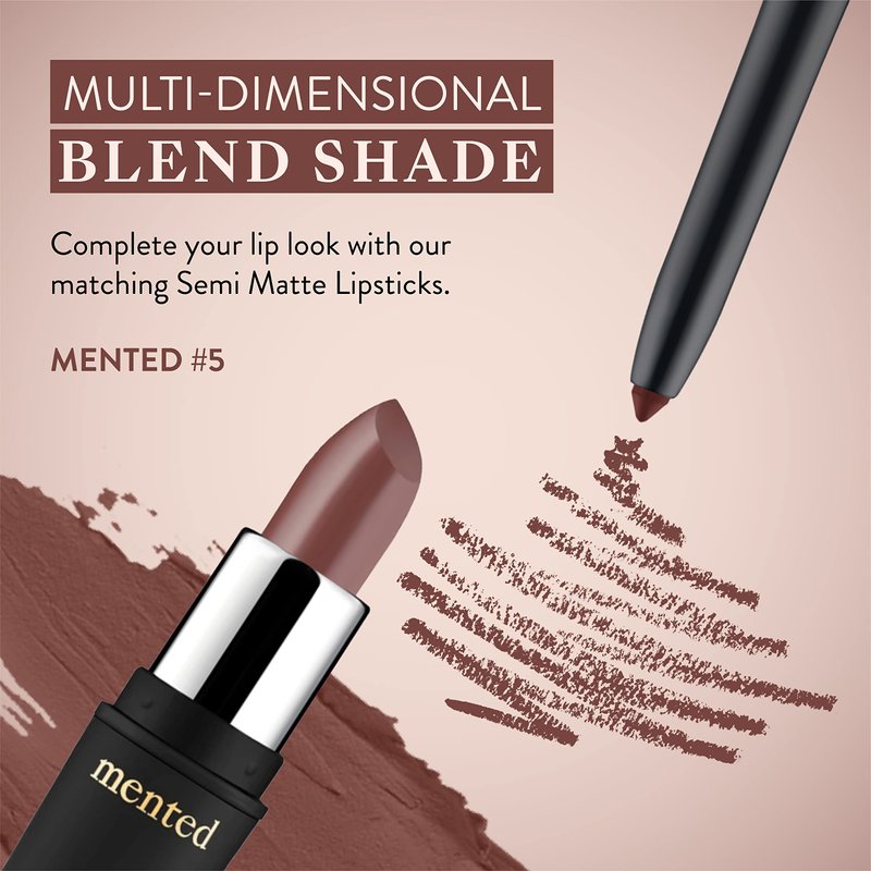 - Multi-dimensional Blend - Mented #5 bears our namesake because it represents everything we love about a nude lip liner. It's a fully-pigmented, multi-dimensional and unique purple and brown blend. Paired perfectly with Mented’s Mented #5 Semi Matte Lipstick! Trust us - you won't want to take this shade off.