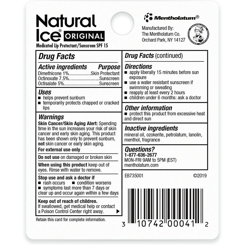 Mentholatum Natural Ice Lip Balm Original SPF 15 1 Each ( Pack of 3)