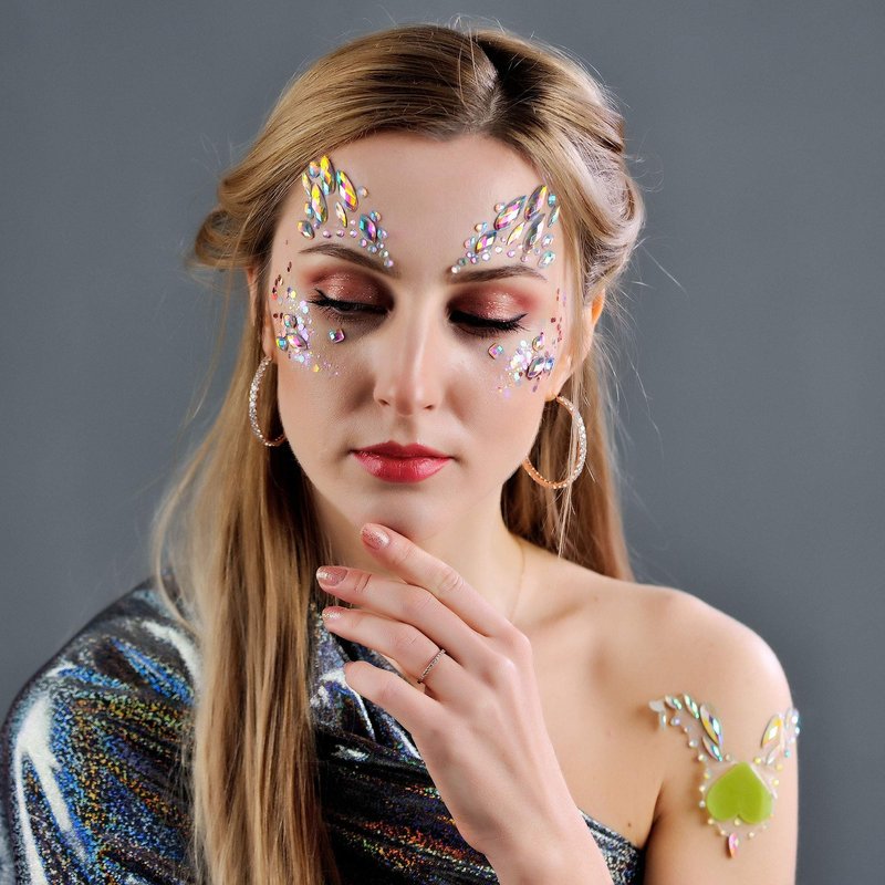 - 1. Most important is to keep skin clean and dry, because any oil-based marm Tips:Tip #1: We encourage you to get creative. Cut apart to do your own design, DIY can get more fun! Tip #2: Designs are one time use, but gems can be re-applied with eyelash glue. WARNING: The Crystal Body Face Gems Stickers are Not for children under 3 years.