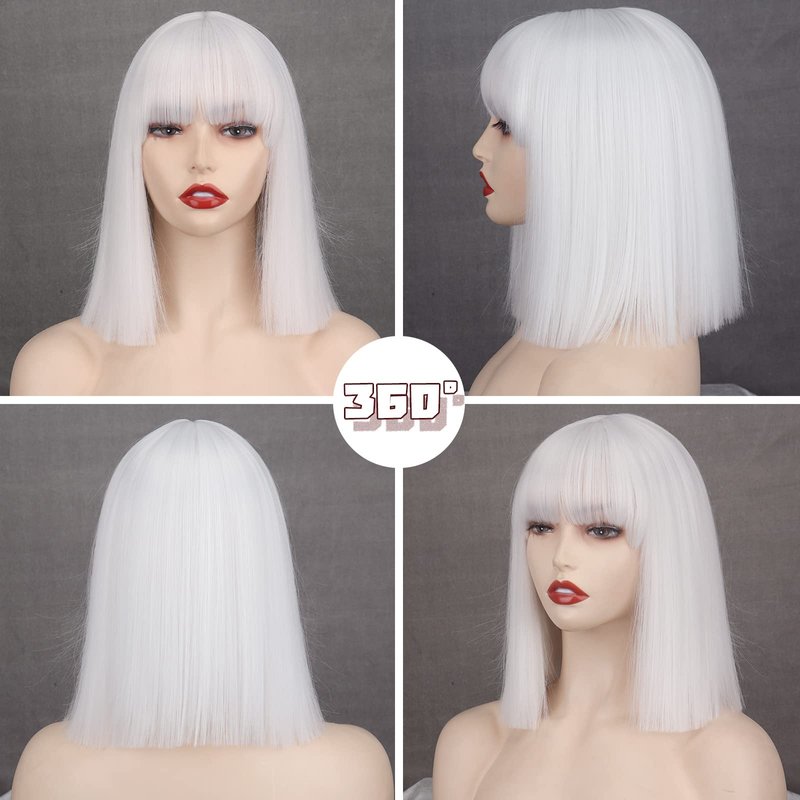 - Occasions: Fashionable and stylish short white wigs with look natural, very pretty, and feminine, soft touch. You can wear it for parties, Halloween, cosplay, daily use,gift sending to friends and certain themed performance, fashion and attractive, adding more charm and fun. white bangs wig will make you shinning.