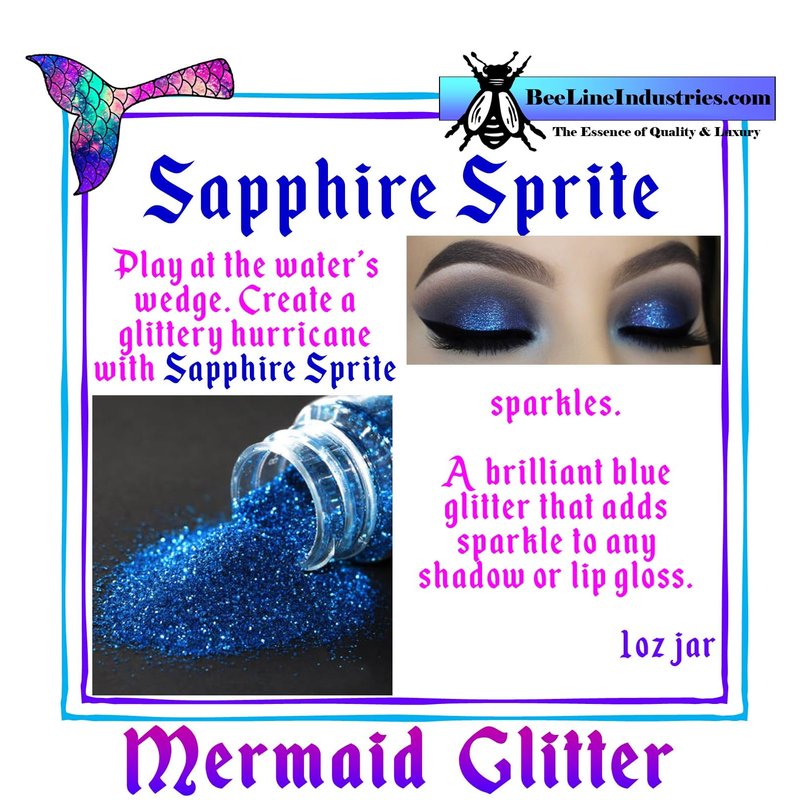 - Play at the water’s wedge. Create a glittery hurricane with Sapphire Sprite sparkles. A brilliant blue glitter that adds sparkle to any shadow or lip gloss.