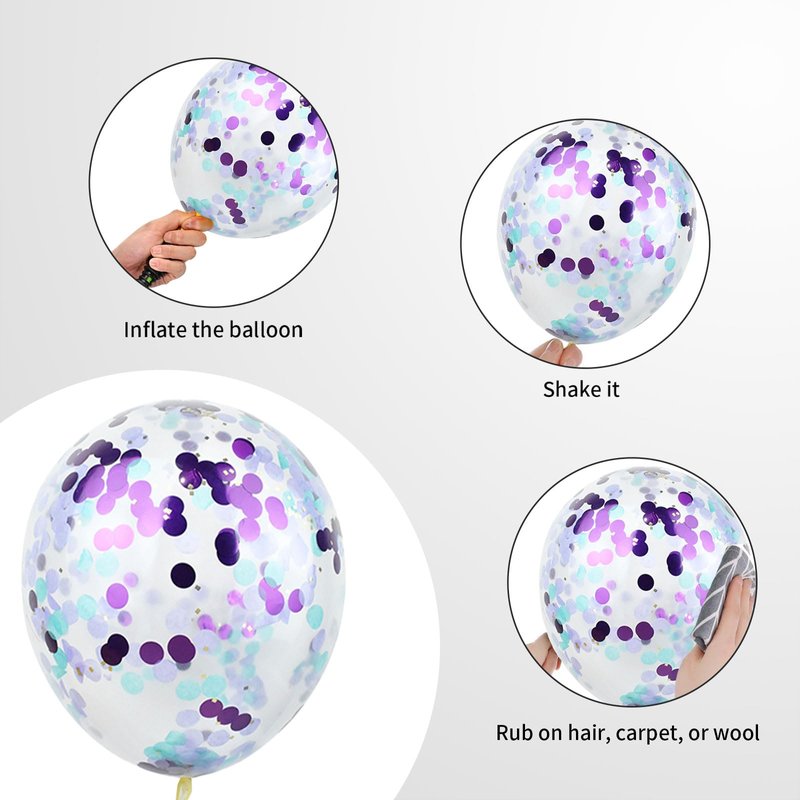 - Easy To Use: We provide ribbons to assist you in assembling the balloon kit. We've included confetti in the balloons; simply inflate them with air or helium, then rub them with a dry cloth or your hair to make the confetti stick to the sides. However, when inflated with helium, since confetti is heavier than hydrogen, it might sink to the bottom of the balloon. So, before inflation, a spritz of water could help.