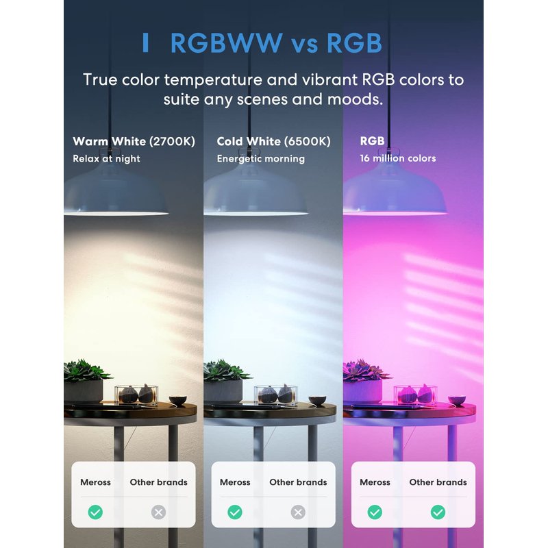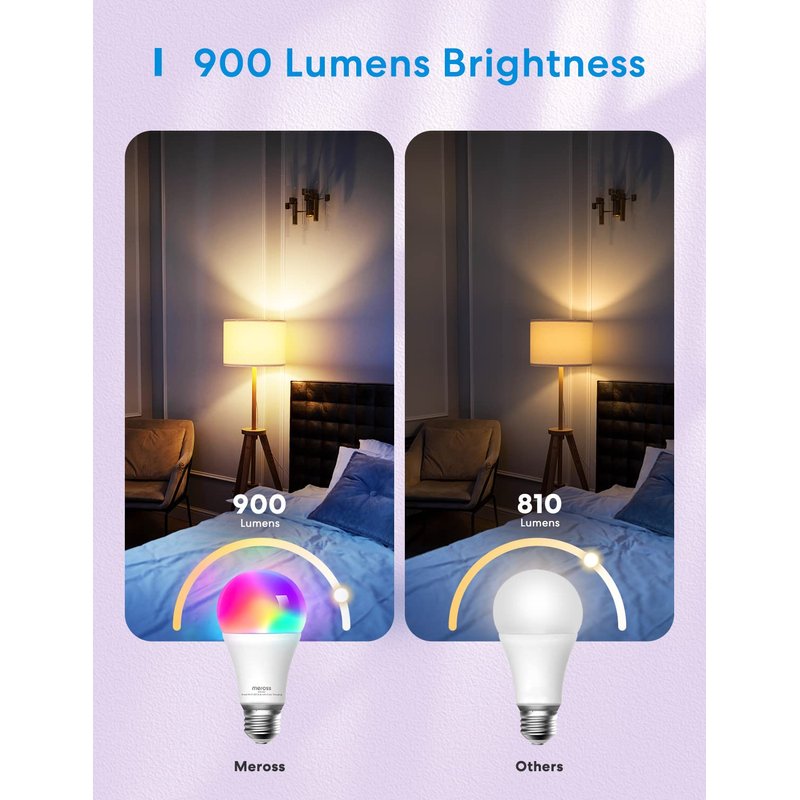 - Upgraded Version Light Bulb: The Meross bulb is an excellent upgrade from the previous version, offering 900LM warm white light, a separate antenna for stronger Wi-Fi signal and network stability, and increased LEDs for brighter light and more vibrant colors. With this bulb, you can enjoy a better lighting experience