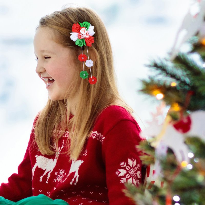 Tassel Detail: Featuring a cute Santa accent and festive tassel ribbons, Adds playful movement and festive charm. adorable Christmas hair clips are the perfect addition to any holiday outfit, adding a touch of holiday cheer to your look.