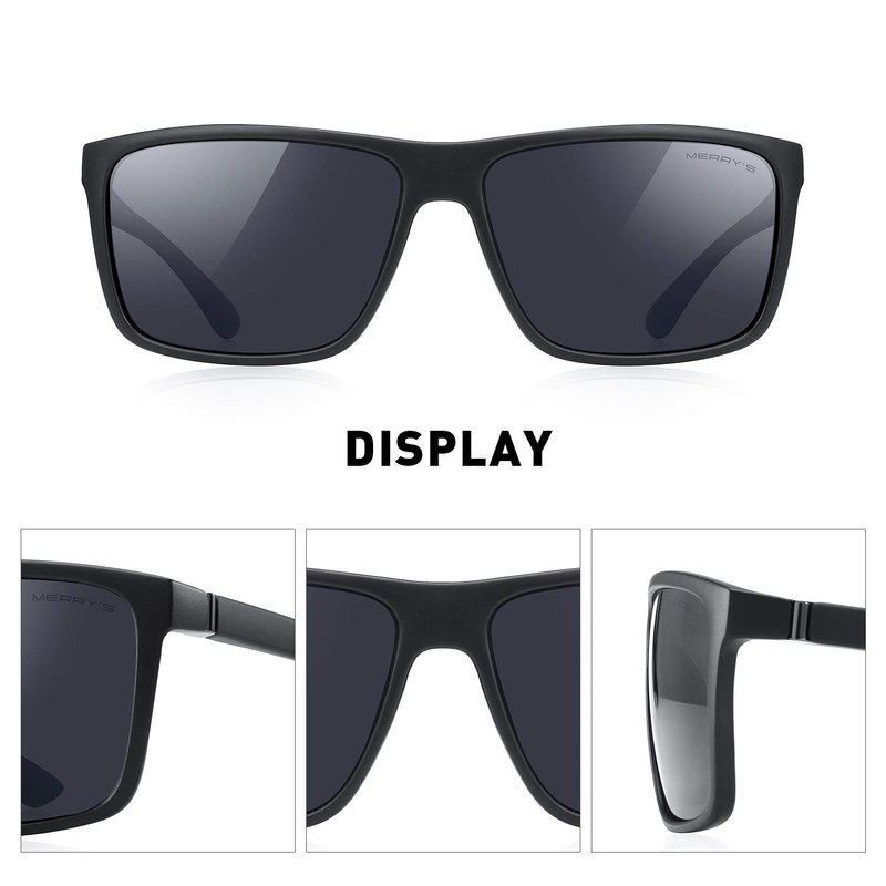 MERRY'S Rectangular Polarized Sports Sunglasses for Men Women Cycling Driving Fishing UV400 Protection S8225