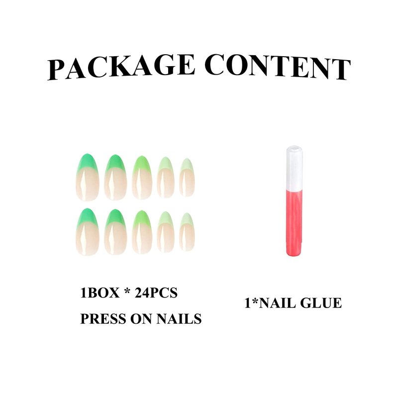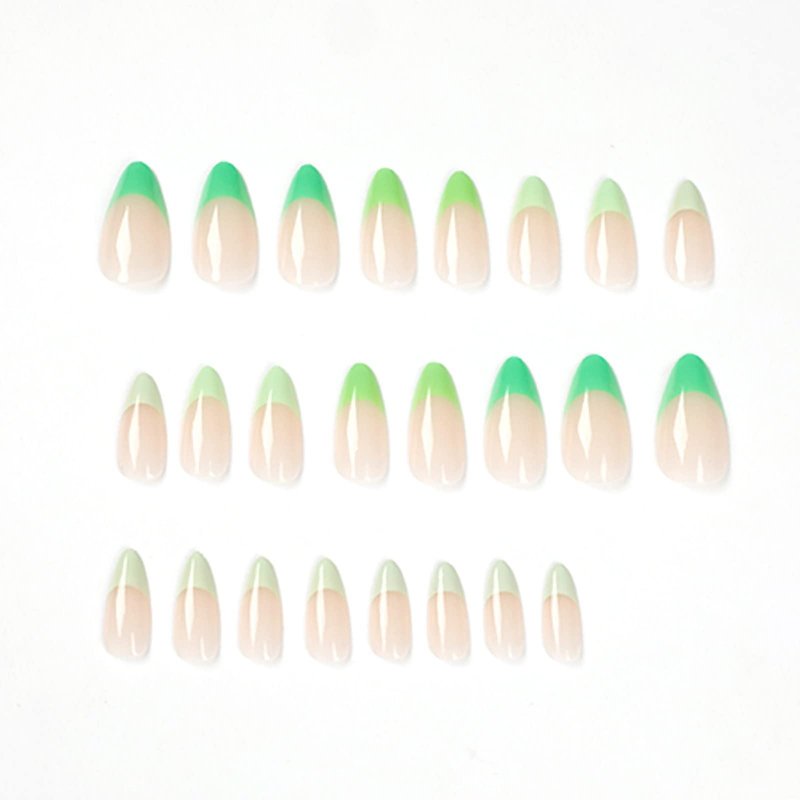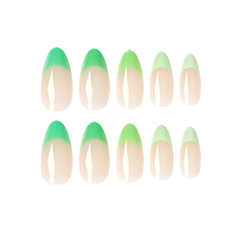 MERVF Green Almond Press on Nails Medium French Tip Fake Nails Neon Stiletto Glue on Nails Spring Acrylic Nails St. Patrick's Day False Nails Glossy 24Pcs