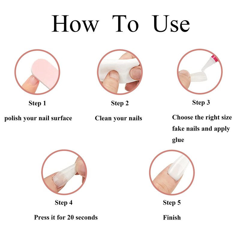 - Easy to Use: Fake nails just choose a right size of the nail, polish the nail bed, apply glue on nails and press it for about 20 seconds. You can get a new nail by yourself without wasting time and more money at the nail salon