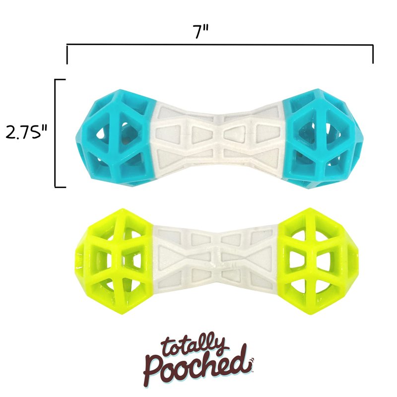 Messy Mutts Totally Pooched Flex n' Squeak Dumbbell | 7” Durable Foam Rubber Dog Toy with Squeaker | Made for Tough Chewers | Interactive Treat Puzzle for Dogs | Grey/Teal