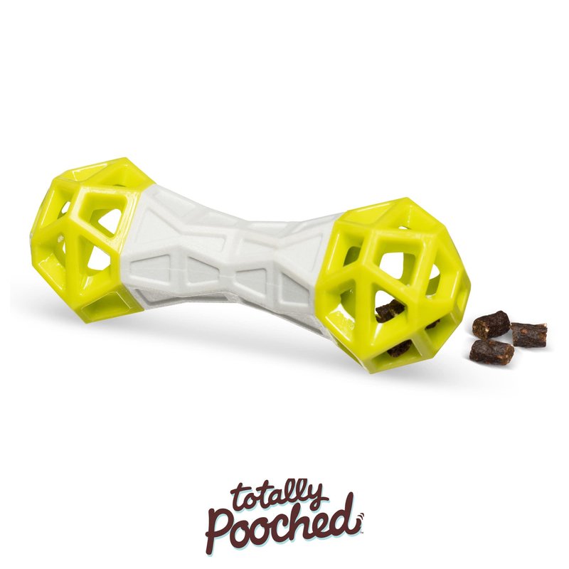 - DOG TREAT TOY – This enrichment dog toy features a hollow, dumbbell shape that can hold small treats, including bully sticks. Its one-way holes make treats harder to remove, rewarding dogs for their persistence. Freeze treats inside for extra-long play sessions, giving puppies and medium to large dogs a fun challenge that boosts mental stimulation.