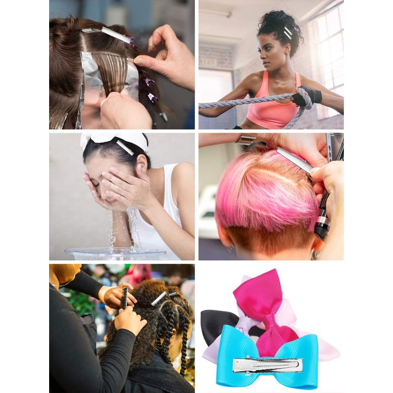 Do you search every corner of your bathroom for hair clips during hair coloring? Is it frustrating that most hairclips damage fine kid hair? This set of gator clips can definitely help. These metal hair clamps with resilient springs and a smooth surface can easily be glued or soldered and are super handy for DIY hair bow making or hair coloring. The hair clasps with perfectly aligned teeth are easy to open and can secure hair without pulling or hurting the scalp. Short, long, thick, thin, straight or curly hair? It does not matter. This set of hairclips with a flat top will take care of all hair types. The square-nosed clips are as comfortable to wear as pelican or duckbill clips and the single prong holds as well as double prongs.