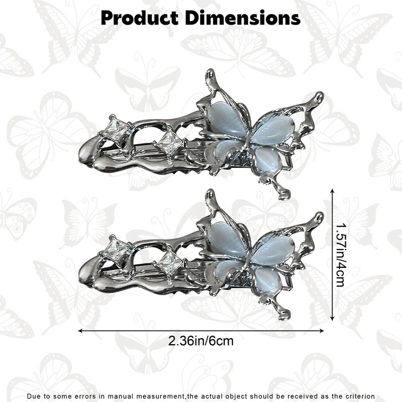 - Stylish Design: Made from high-quality alloy, these hair clips boast a sleek silver and are adorned with charming butterfly decorations, adding a touch of elegance to any hairstyle.